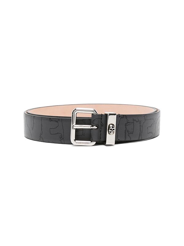 All-over logo print, buckle fastening, punched holes, adjustable fit, silver-tone hardware.