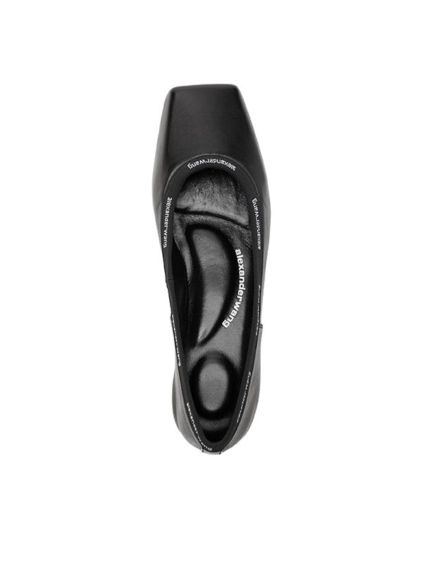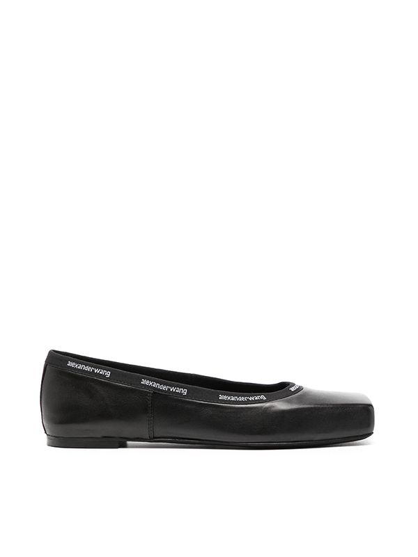 Logo trim, square toe, slip-on style, branded leather insole, flat leather sole.