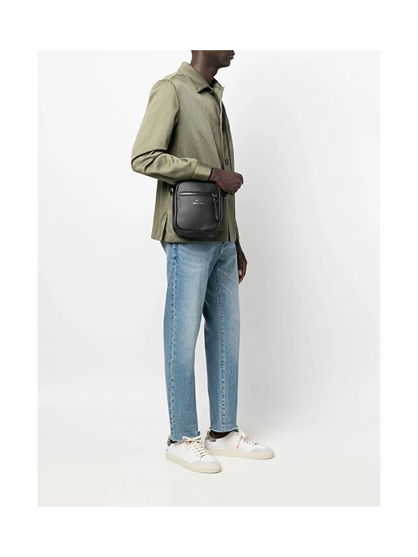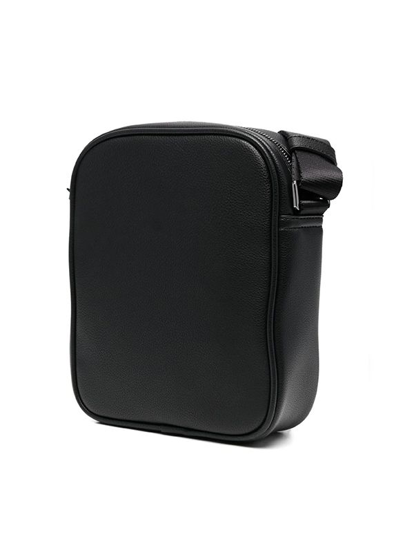 Silver-tone, logo lettering, front zip-fastening, compartment top, zip fastening, adjustable shoulder strap.