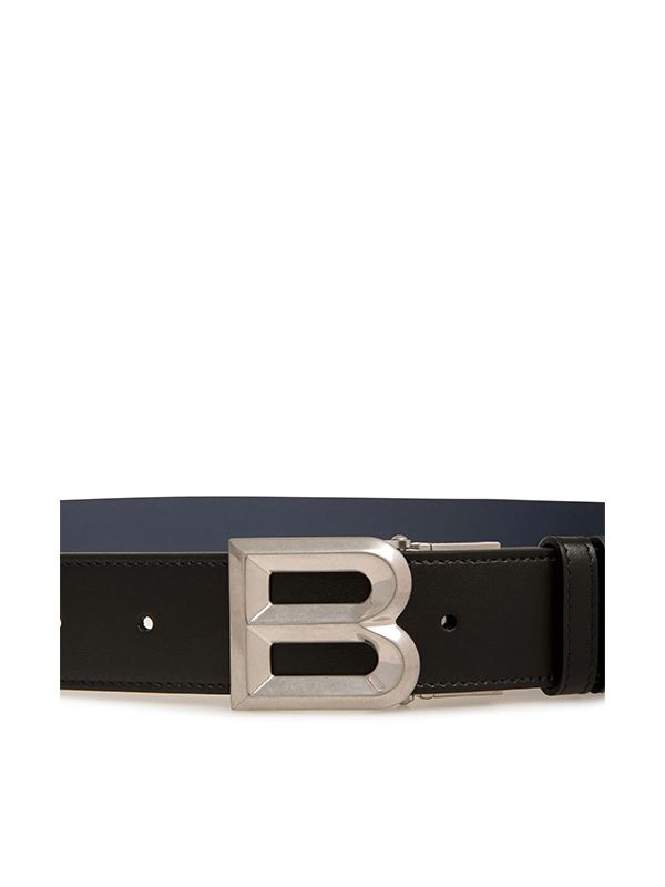 Smooth grain, reversible, punched holes, logo-buckle fastening, adjustable fit, silver-tone hardware.