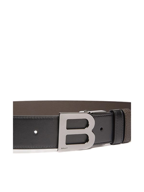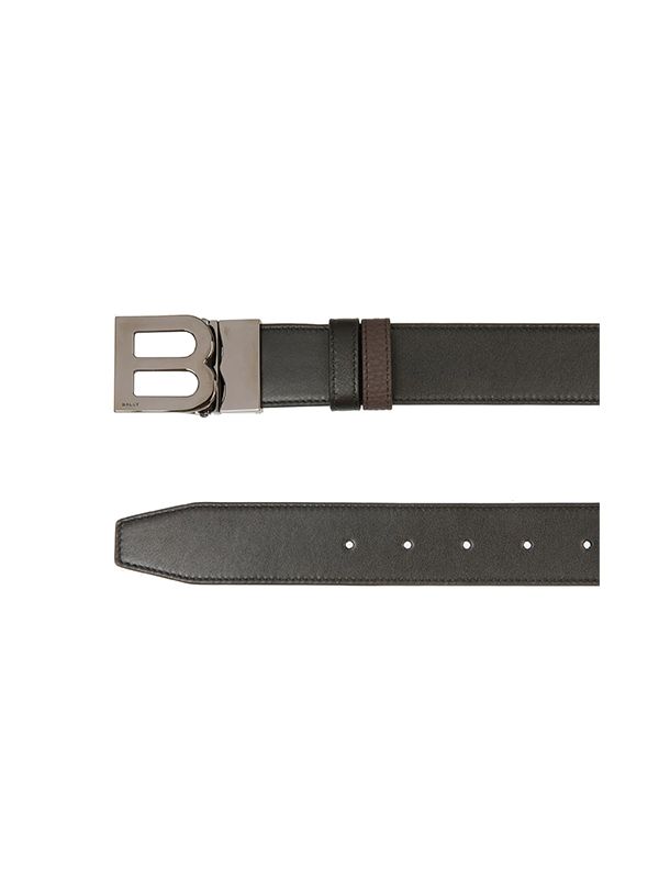 Buckle fastening, punched holes, silver-tone hardware, reversible.