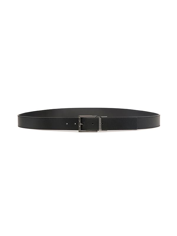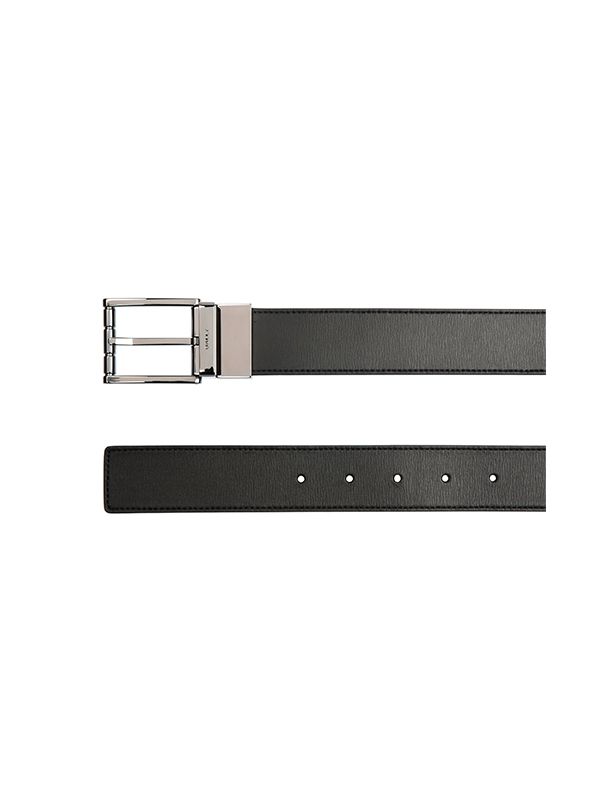 Silver-tone hardware, punched holes, front buckle fastening, adjustable fit.