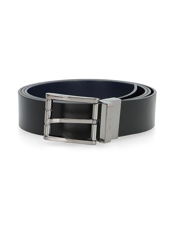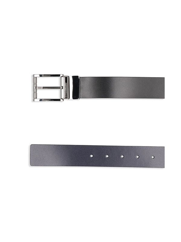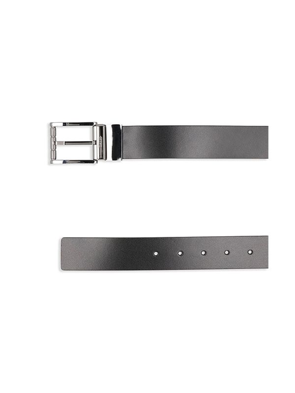 Buckle fastening, engraved logo, punched holes, adjustable fit.