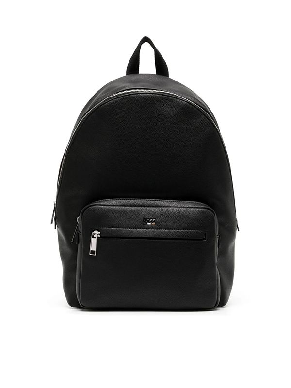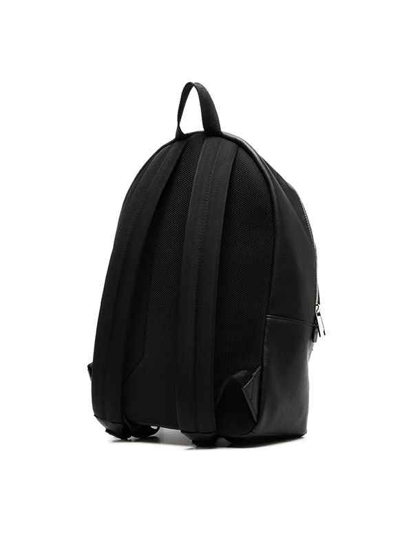 Debossed logo to the front, silver-tone hardware, engraved logo, all-around zip fastening, two padded adjustable shoulder straps, single flat top handle, front zip-fastening pocket.