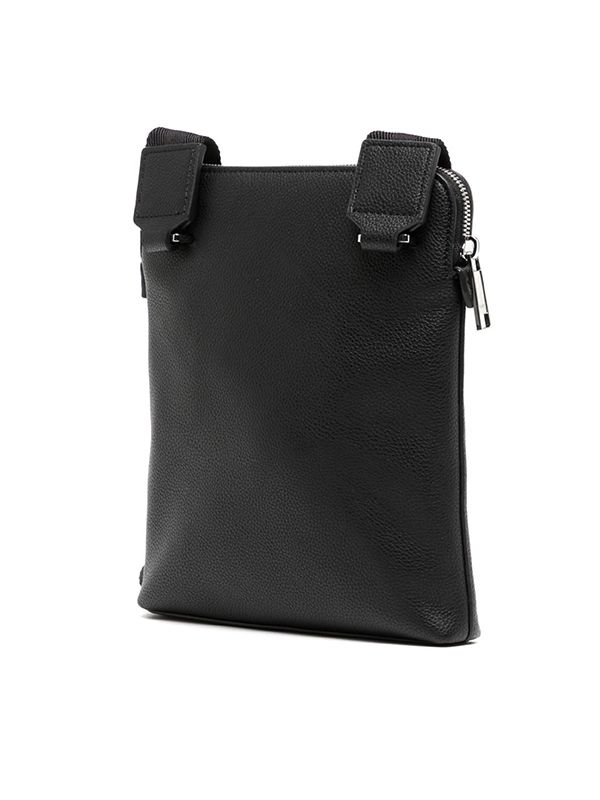 Faux leather, pebbled texture, embossed logo to the front, adjustable shoulder strap, front zip-fastening, pocket top zip fastening, main, internal zip-fastening pocket.