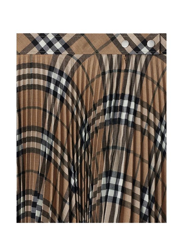 Vintage Check pattern, fully pleated, silver-tone stud detailing, straight hem, flared hem.