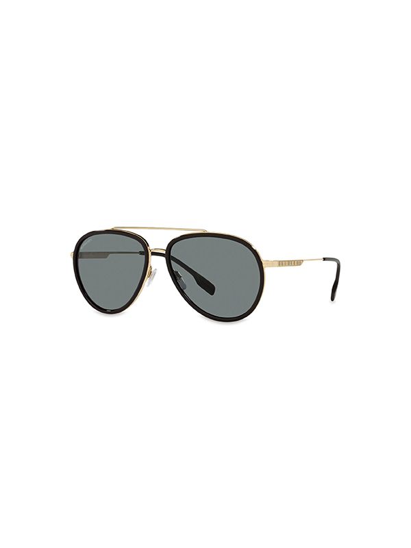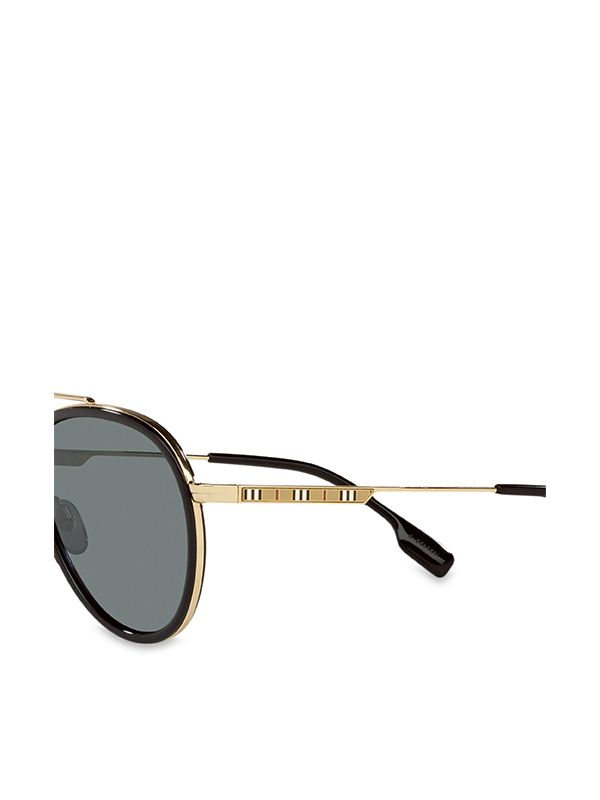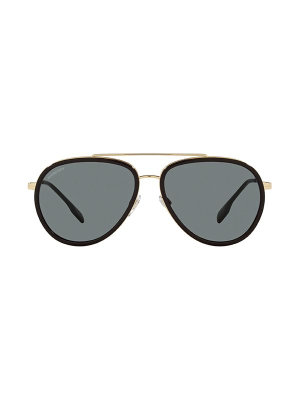 Gold-tone hardware, tinted lenses, pilot frame straight arms.
