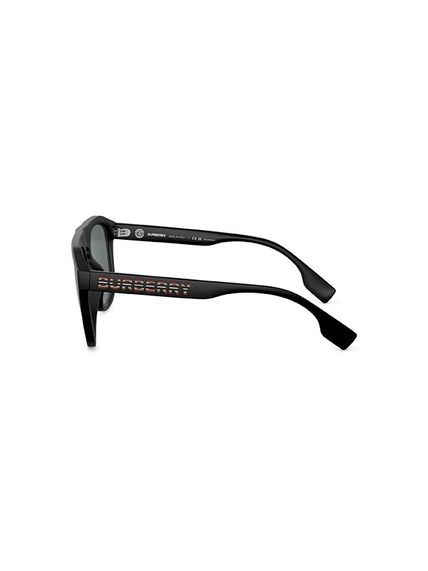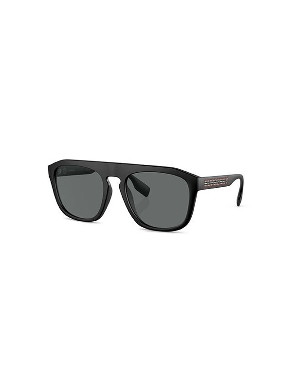 Tinted lenses, pilot frame, raised bridge, logo print at the arm, straight arms curved tips.