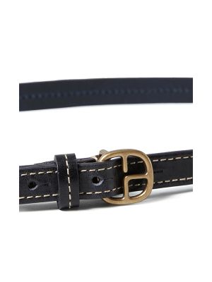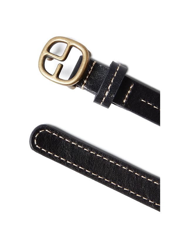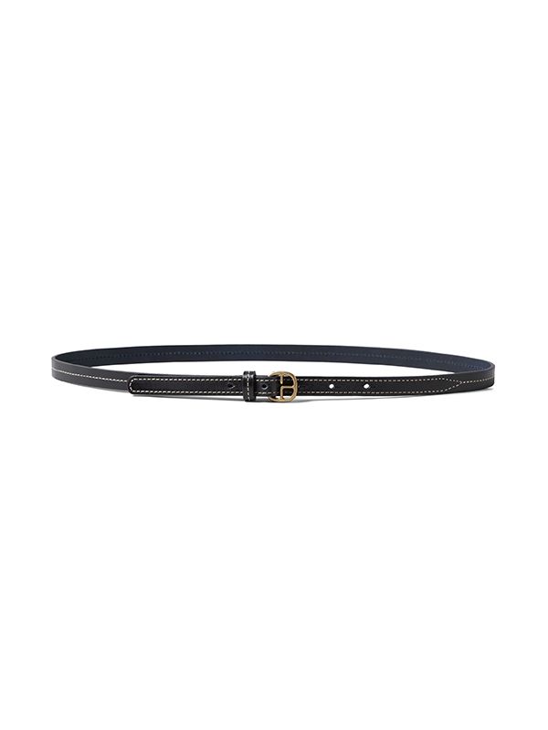 Logo-buckle fastening, punched holes, round tip.