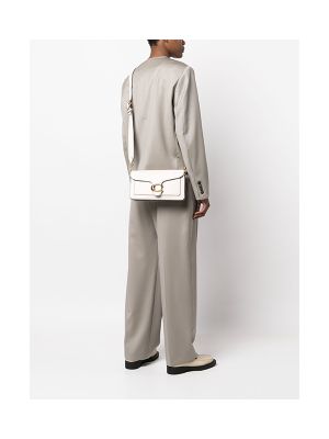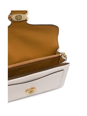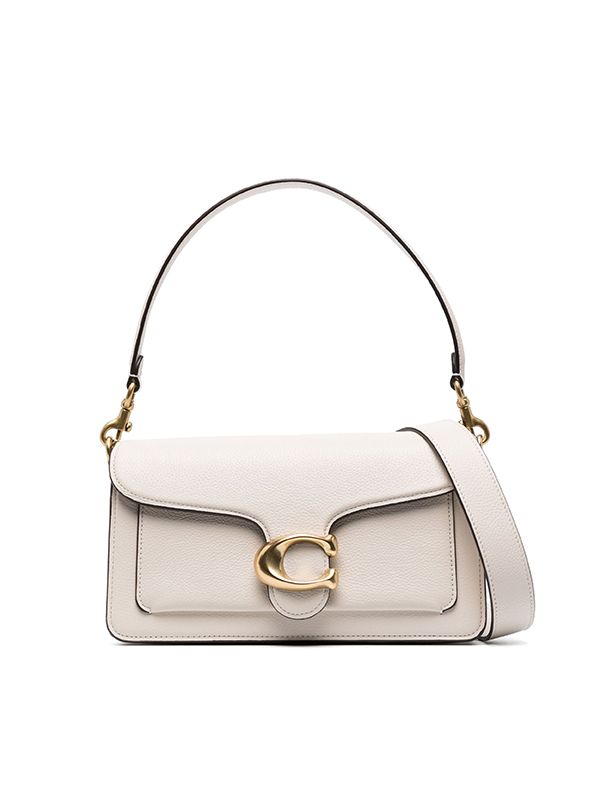 Pebbled texture, gold-tone logo plaque, detachable shoulder strap, fold over top, partitioned compartment, internal zip-fastening pocket.