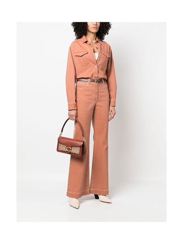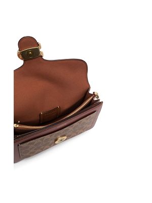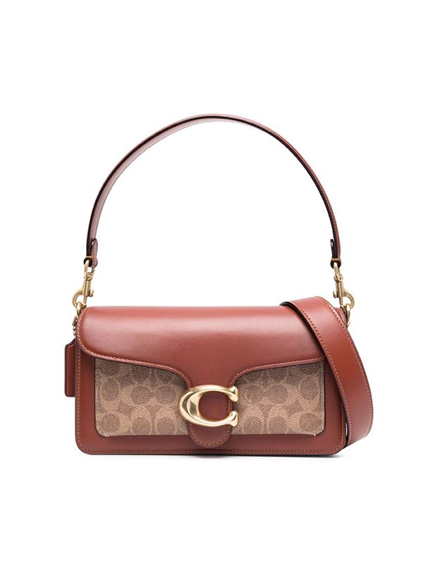 Structured rectangular shape and logo plaque on the front, classic brown, with a logo print detail on the front pocket.