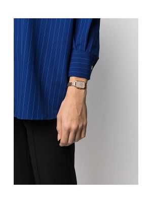 Quartz movement, crystal index, pink mother-of-pearl dial, rectangular face, adjustable link bracelet, clasp fastening, water resistance up to 30m/3 ATM.