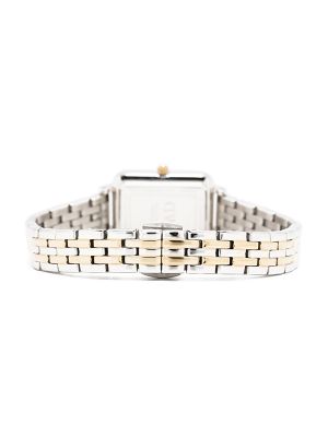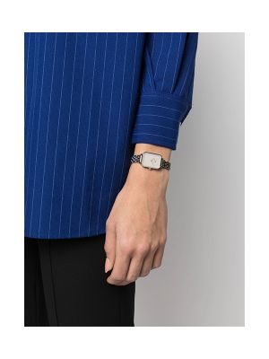Gold plated, quartz movement, eggshell white, crystal index, rectangular face, sword hands, two-tone bracelet, concealed clasp fastening, screw-down crown, water resistance up to 30m/3 ATM.