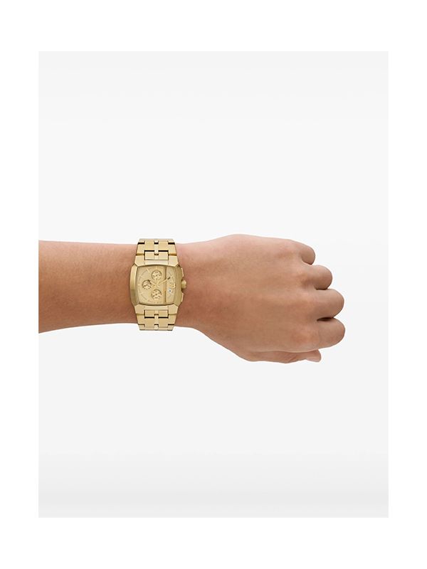 40mm, stainless steel, quartz movement, index dial, stick hands, chronograph counters, date indication, square face, screw-down crown, stainless steel link bracelet, folding clasp, water resistance up to 50m/5 ATM.