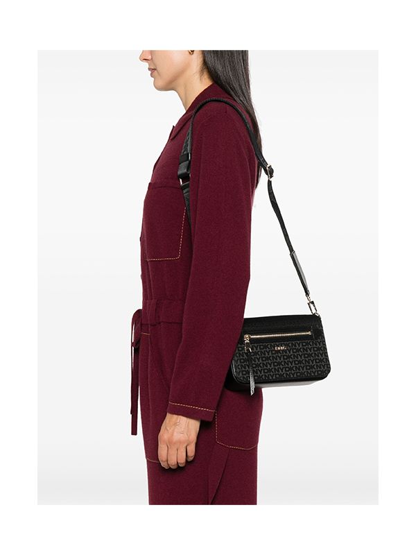 Fold over top with magnetic fastening, jacquard logo motif, panelled design, adjustable detachable logo-jacquard shoulder strap, logo lettering, front zip-fastening pocket, rear patch pocket, logo-jacquard lining, main compartment, internal patch pockets, internal logo patch.