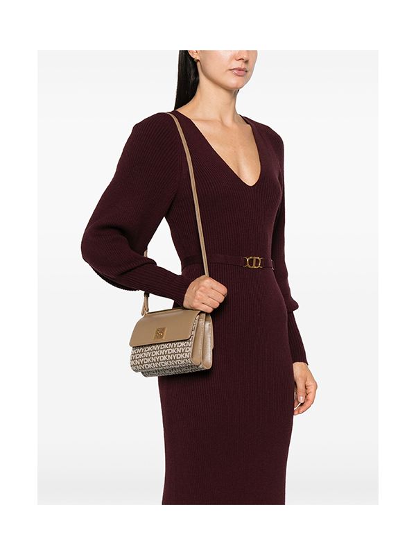 Fold over top with magnetic fastening, leather, coated finish, adjustable shoulder strap, logo plaque, partitioned compartment, logo-jacquard lining, internal card slots, internal logo patch.