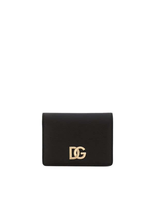 Logo-plaque bi-fold wallet, gold-tone logo plaque, bi-fold design,