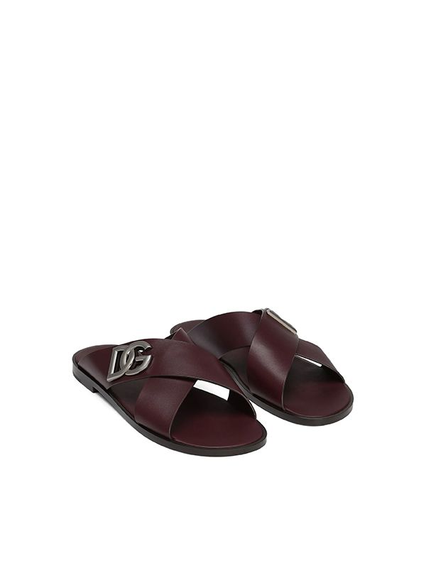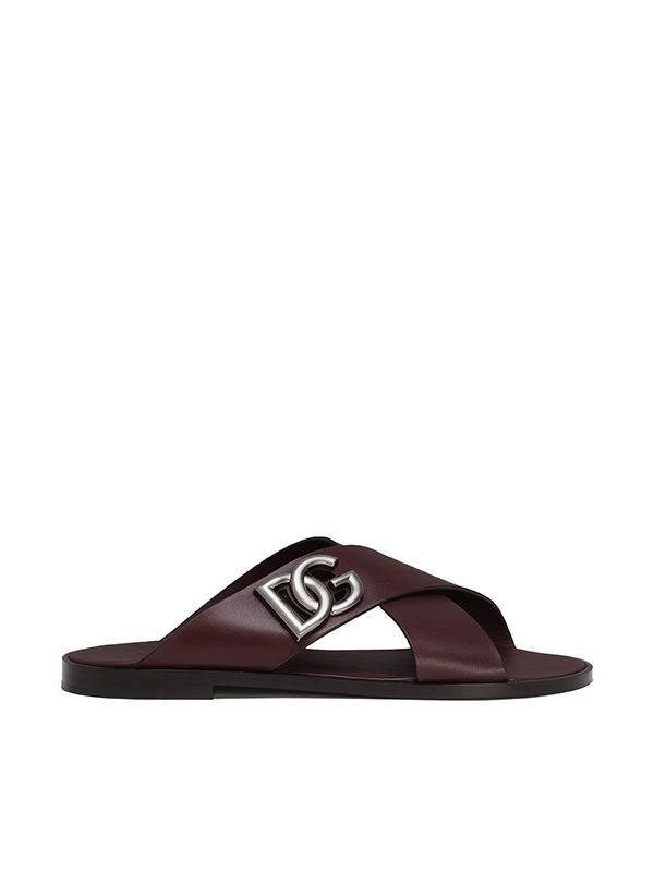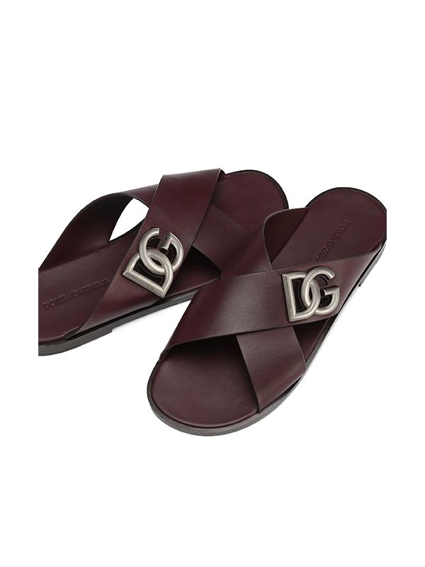 Dolce & Gabbana Logo-Plaque Cross-Strap Slides
