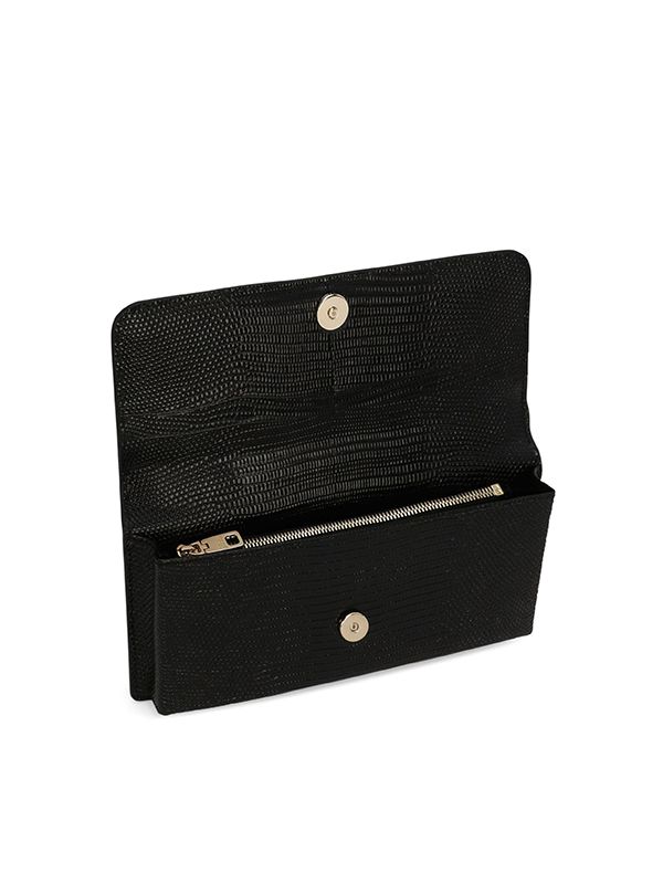 Textured finish, iguana print, gold-tone logo plaque, engraved logo, gold-tone hardware, fold over top with magnetic fastening, concealed top zip fastening, detachable chain-link shoulder strap, single top handle, main compartment.