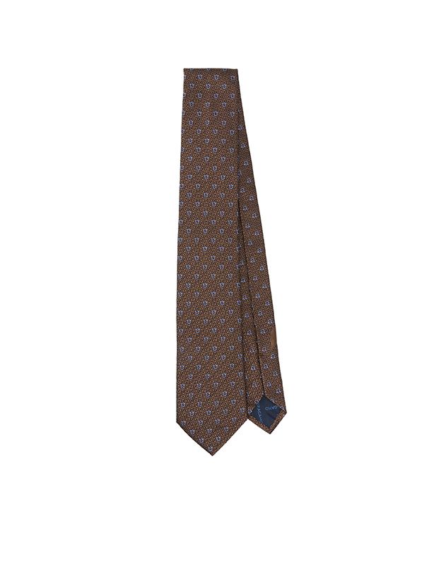 A sophisticated weave of sinuous lines and woven hooks adorns this pure silk tie.