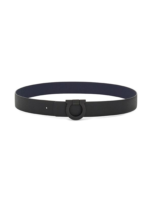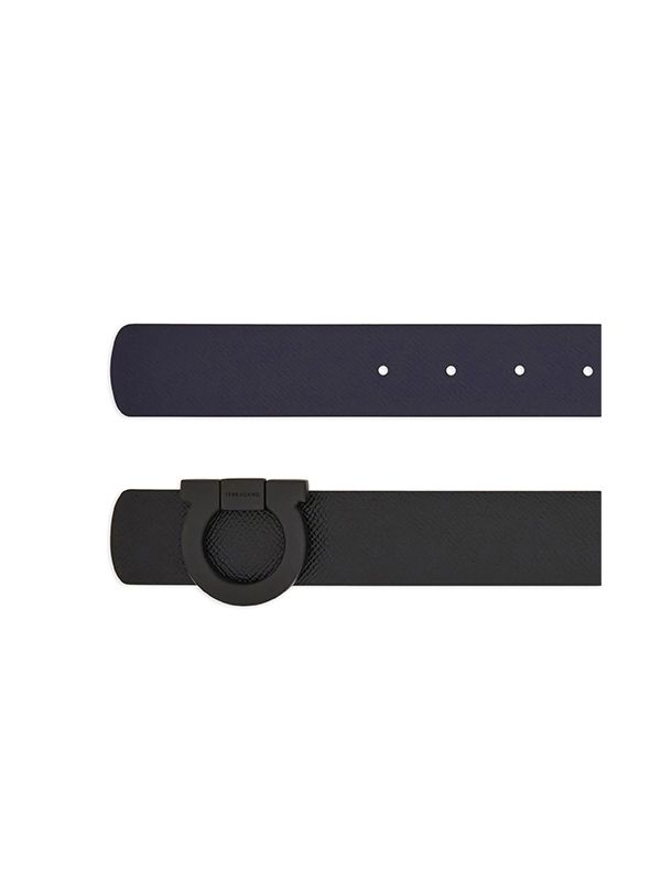 Gancini buckle, pin fastening, adjustable fit, punched holes.