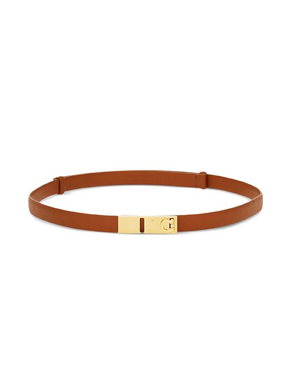 Gold-tone hardware, detachable Gancini buckle, adjustable waist strap.
