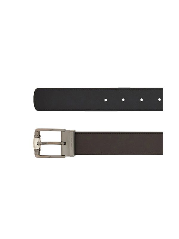 Reversible, buckle fastening, adjustable fit, punched holes.