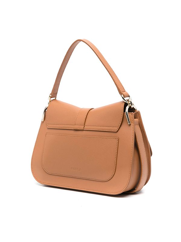 Fold over top with magnetic fastening, smooth grain, Arch logo plaque, debossed logo to the rear, slip pocket to the rear, single top handle, adjustable detachable shoulder strap, main compartment, internal slip pocket, internal logo patch, gold-tone hardware.