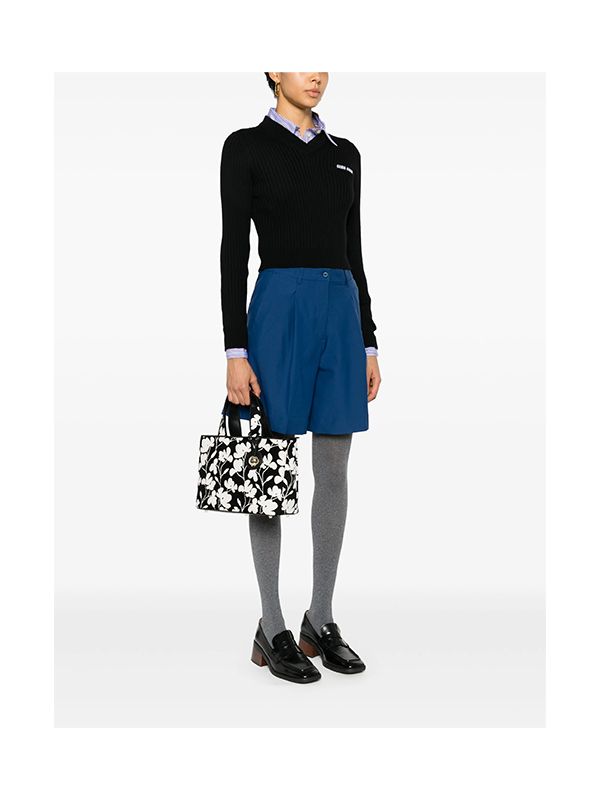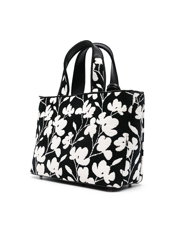 Concealed top zip fastening, patterned jacquard, leather trim, circular pendant, two top handles, detachable adjustable logo-jacquard shoulder strap, main compartment, internal patch pocket, internal zip-fastening pocket, internal logo tag, full lining, metal feet, logo-engraved gold-tone hardware.