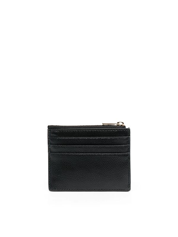 Grained texture, gold-tone logo plaque, card slots, top zip fastening, main compartment.