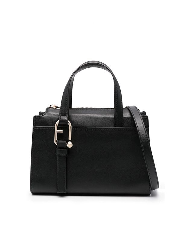 Top zip fastening, smooth grain, adjustable detachable shoulder strap, two flat top handles, logo stamp to the front, gold-tone logo plaque to the rear, rear slit pocket, main compartment, internal zip-fastening pocket, internal patch pocket, internal logo patch, full lining, gold-tone hardware.