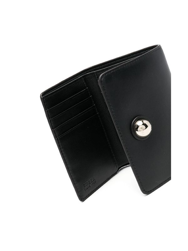 Tri-fold design, logo-engraved gold-tone hardware, rear zip-fastening pocket, internal note compartment, eight internal card slots, two internal slip pockets, debossed internal logo, press-stud fastening.