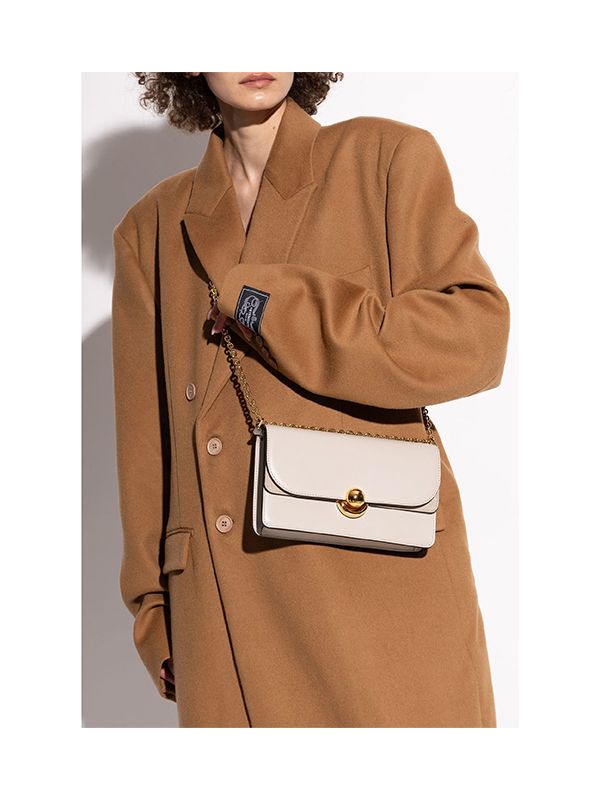Fold over top with magnetic fastening, chain-link shoulder strap, logo-engraved gold-tone hardware, main compartment, internal zip-fastening pocket, internal logo patch.