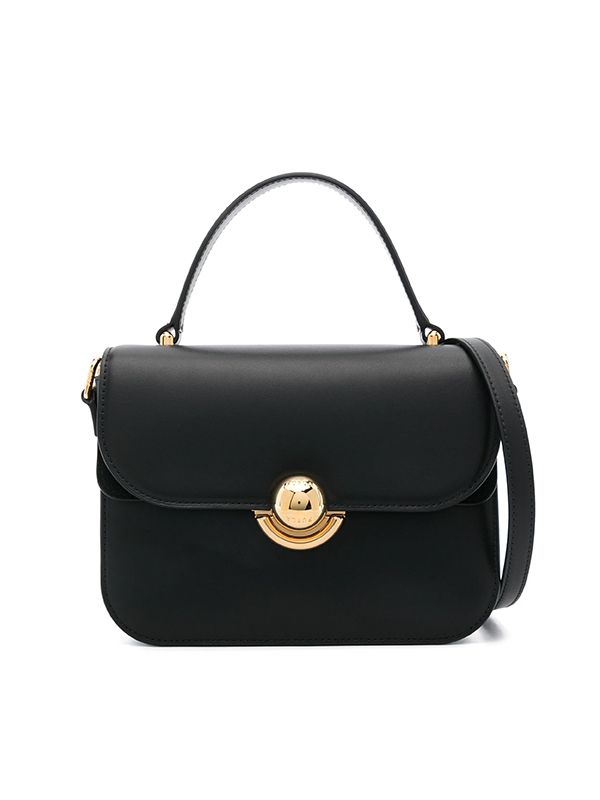 Fold over top, signature Sfera closure, single top handle, adjustable detachable shoulder strap, suede lining, partitioned compartment, internal zip-fastening pocket, internal logo tag. This piece comes complete with a protective dust bag.