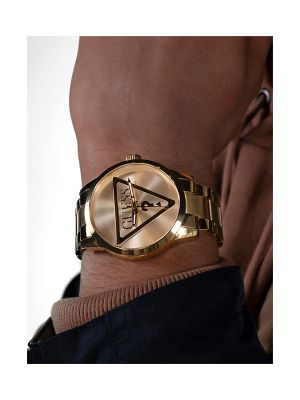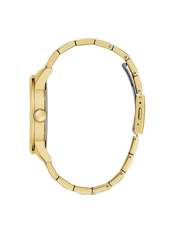 44mm, round face, stick hands, logo embellishment, mineral glass, stainless steel link bracelet, buckle fastening, water resistance up to 50m/5 ATM.