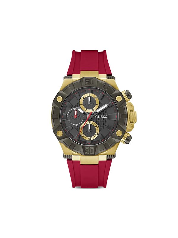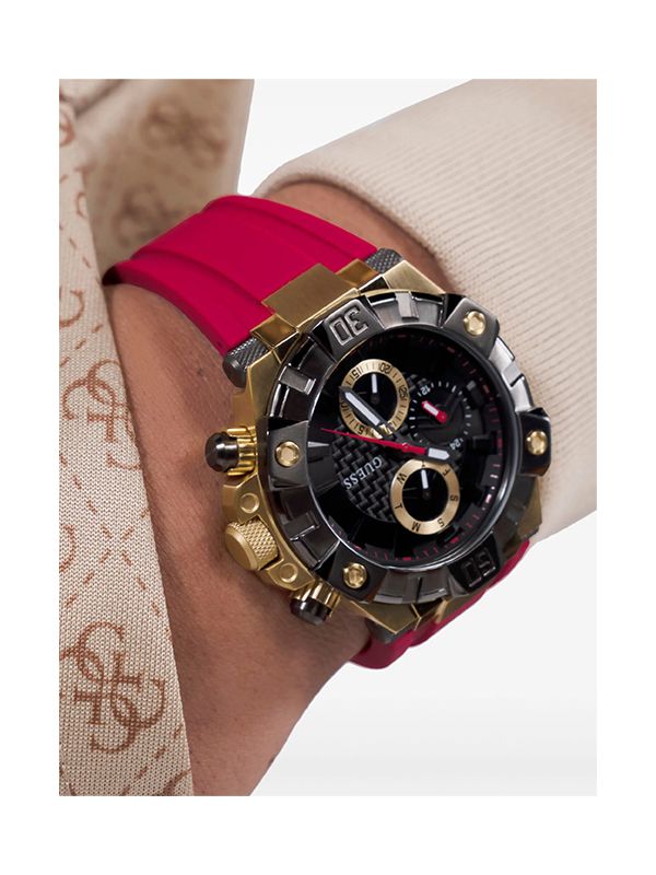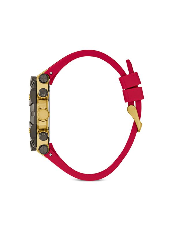 46mm, round face, chronograph counters, stainless steel case, digital–analogue display, buckle fastening.