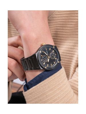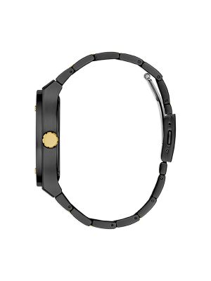 45mm, round face, chronograph counters, adjustable link bracelet, folding clasp.