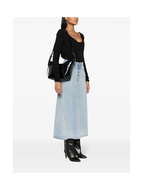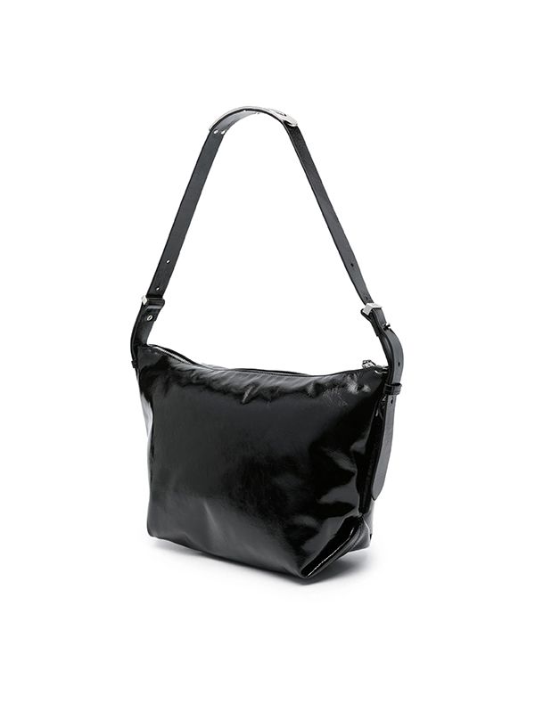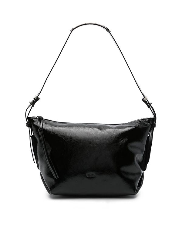 Top zip fastening, high-shine detailing, adjustable shoulder strap, debossed logo to the front, partitioned compartment, internal slip pocket, internal logo patch, full lining, silver-tone hardware.