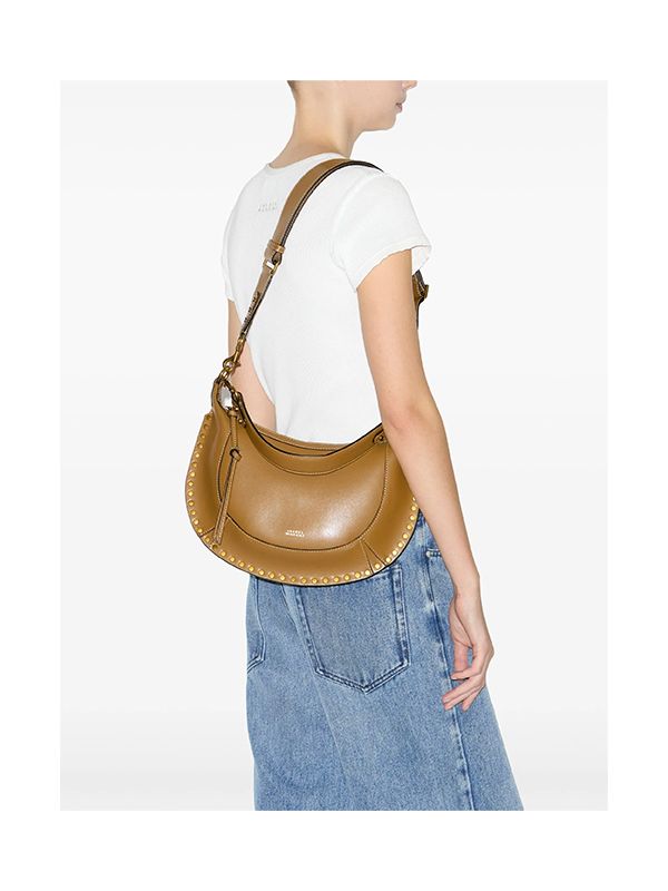 Top zip fastening, smooth grain, gold-tone hardware, logo print to the front, stud embellishment.