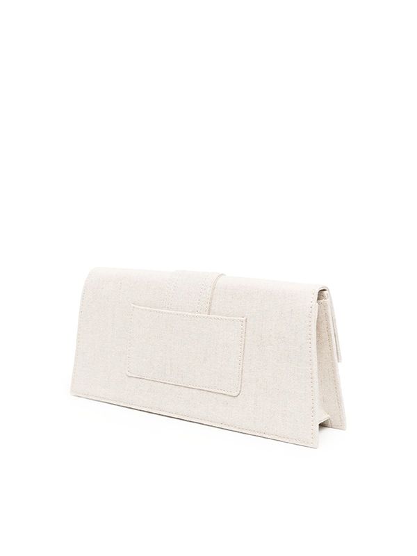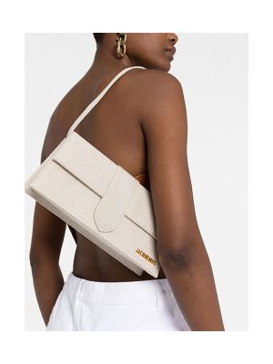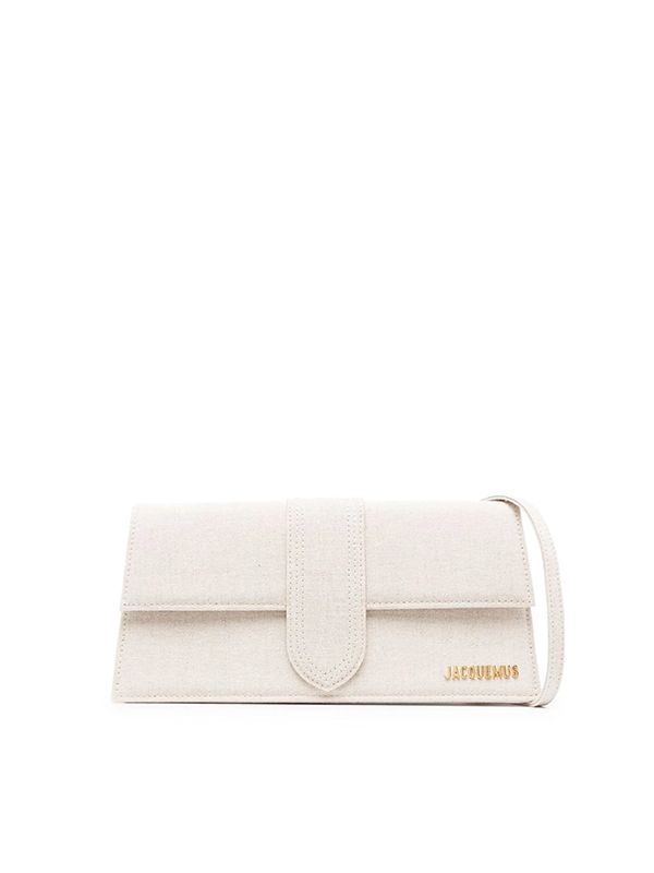 Fold over top with magnetic fastening and adjustable detachable shoulder strap, linen, gold-tone logo lettering, internal logo patch, main compartment, internal slip pocket.