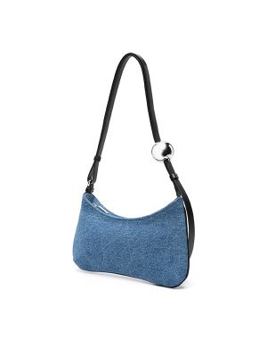 Top zip fastening, denim, silver-tone logo plaque, leather trim, adjustable shoulder strap, main compartment, internal slip pocket.