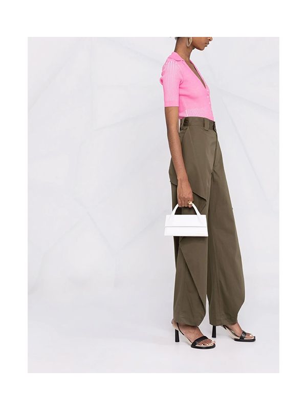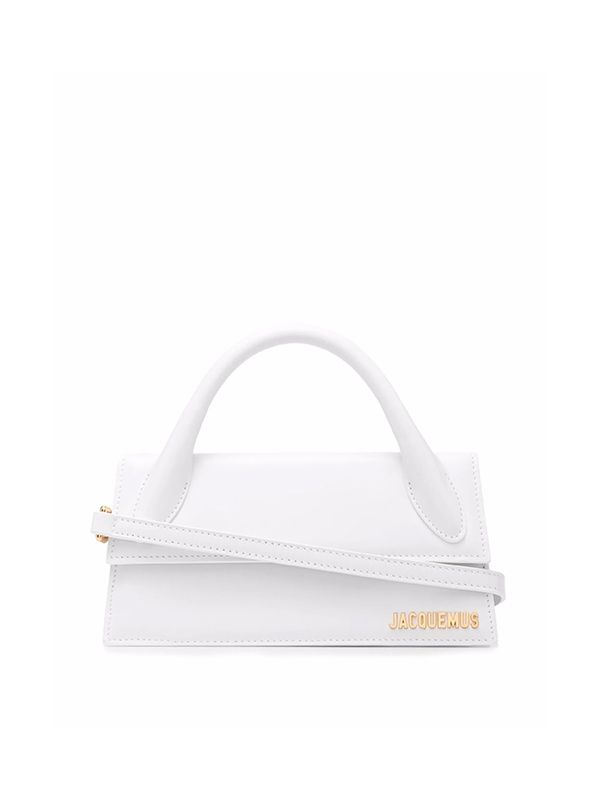 Fold over top with magnetic fastening and internal logo patch, gold-tone logo plaque, single circular top handle, adjustable detachable shoulder strap.