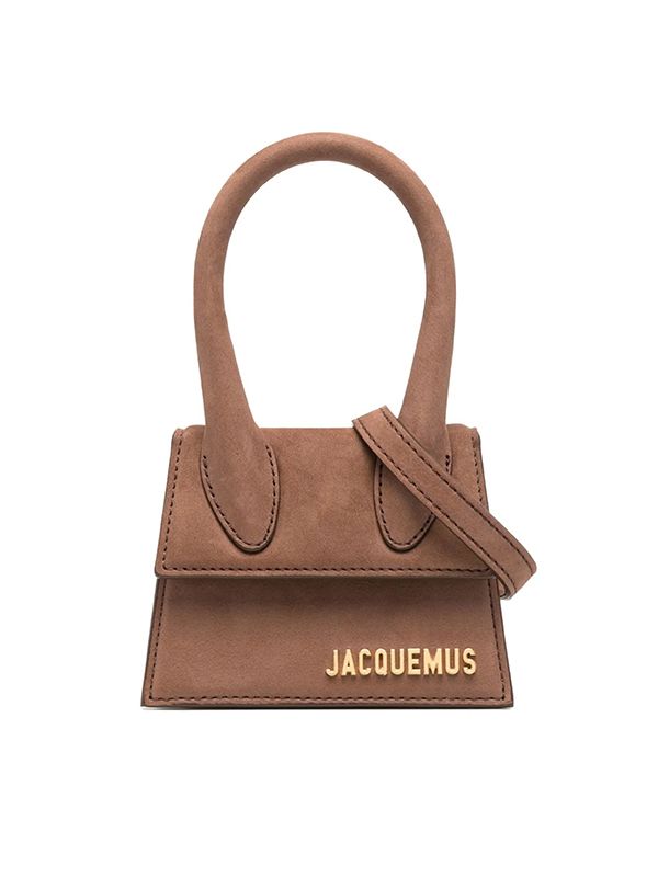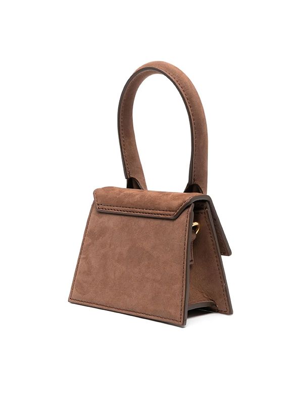 Gold-tone logo lettering, concealed front press-stud fastening, front flap closure single rounded, top handle main compartment.