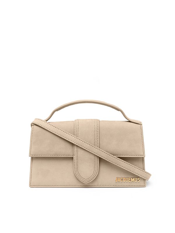Logo plaque, single shoulder strap, single flat top handle, main compartment.