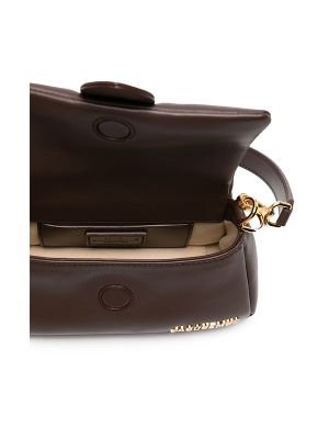 Fold over top with magnetic fastening, padded design, logo lettering, gold-tone hardware.