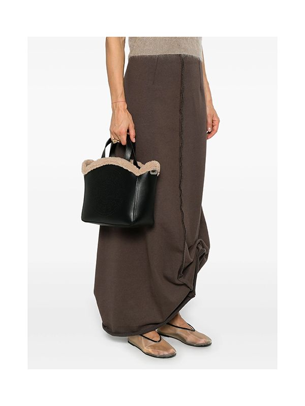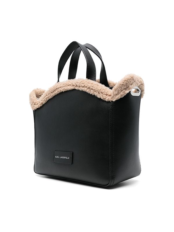 Concealed magnetic fastening, smooth grain, two flat top handles, adjustable detachable shoulder strap, perforated logo detail, logo patch to the rear, main compartment, debossed internal logo, internal zip-fastening pocket, faux-shearling lining.