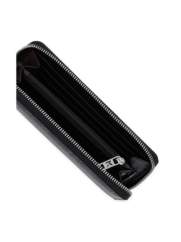All-around zip fastening, internal zip-fastening pocket, internal card slot, internal note compartments.