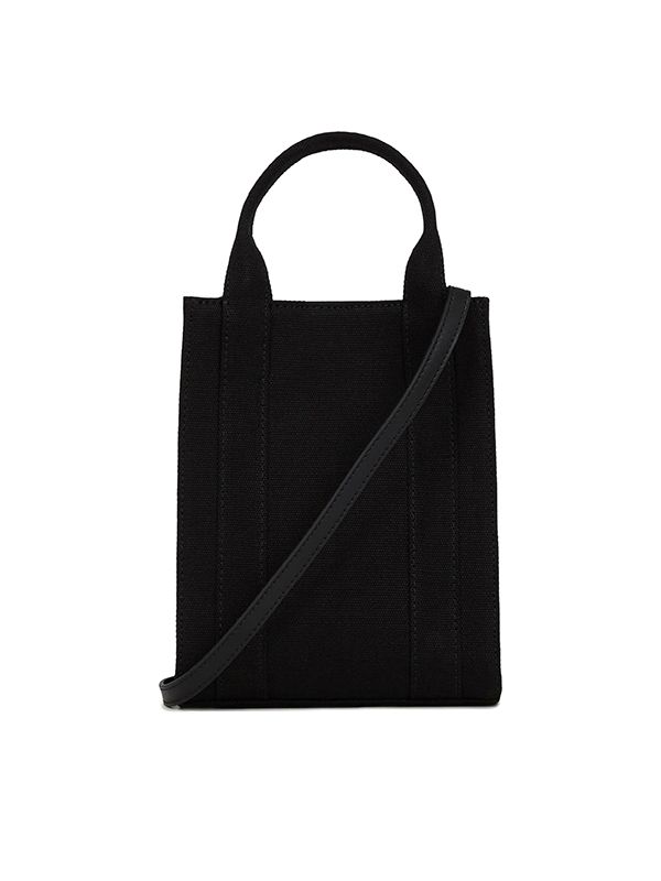 Magnetic fastening, logo print to the front, two rolled top handles, detachable shoulder strap, main compartment, internal card slots.