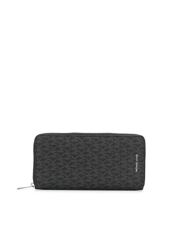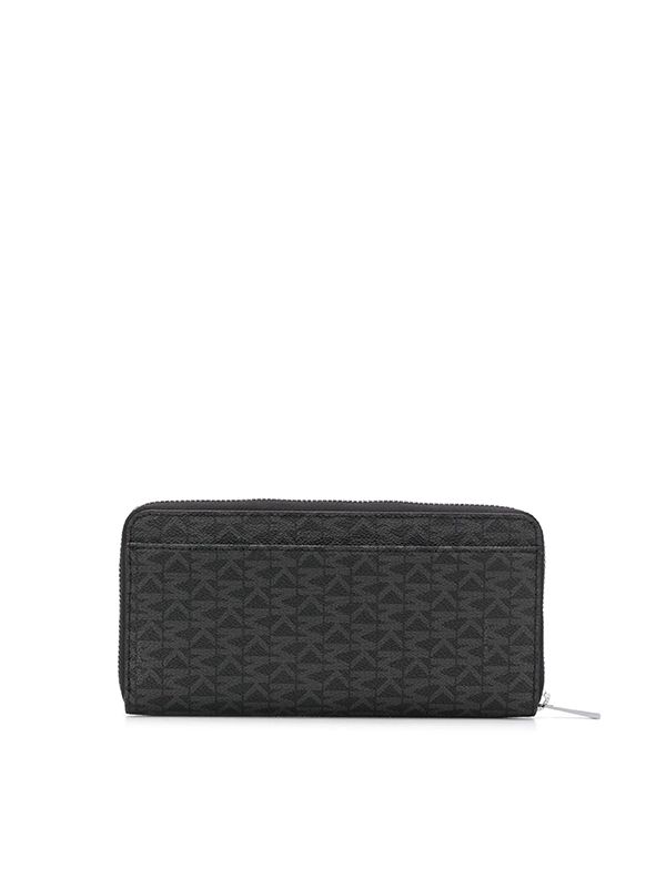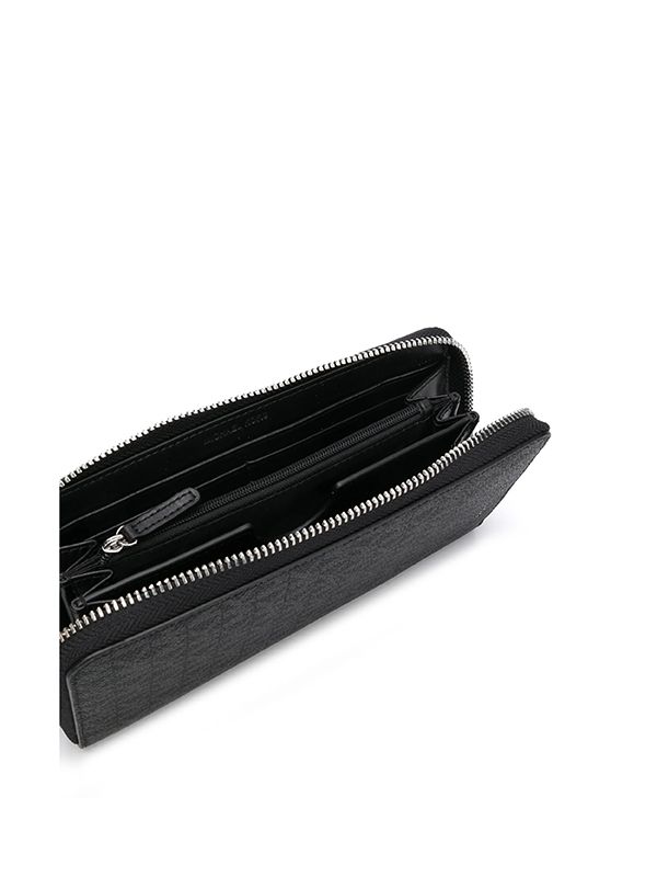 All around zip fastening, a front embossed logo stamp, interior compartments divided by a partition, internal pockets and multiple interior card slots.
