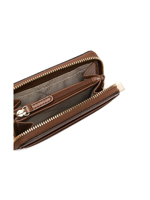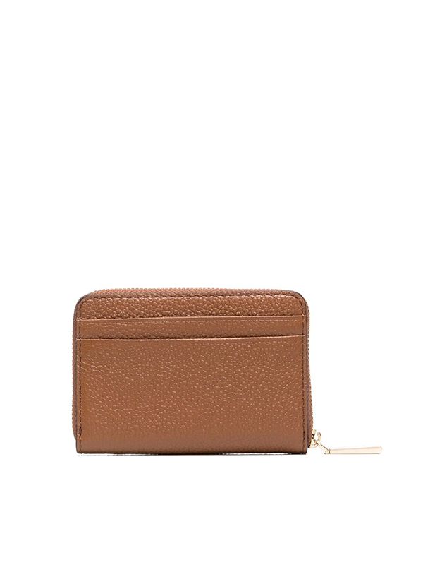 brown leather gold-tone logo plaque main compartment zip-fastening compartment card slots